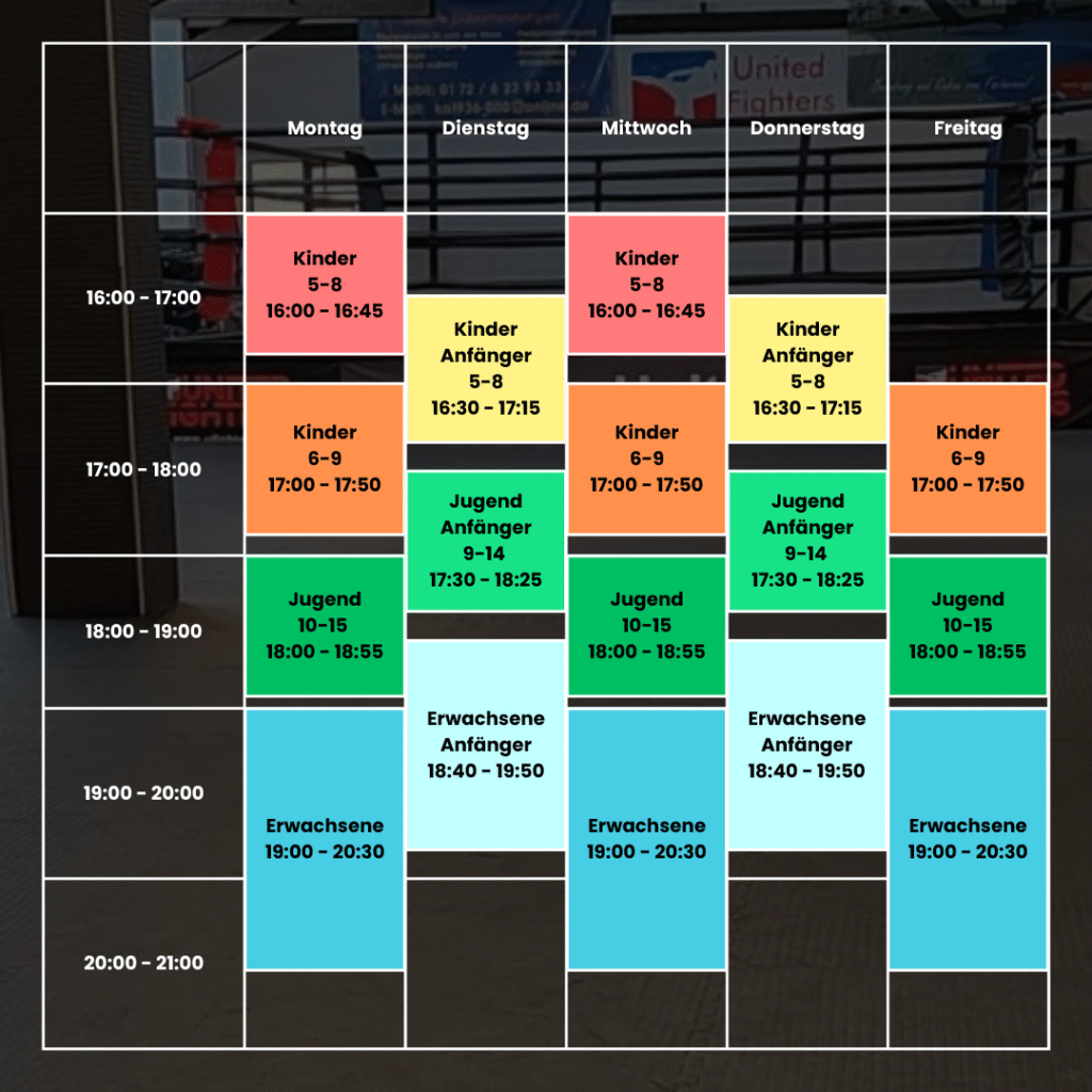 Die Trainingszeiten für Kinder, und auch alle anderen Kurse, findest du auf unserem Kursplan etwas weiter oben, bzw. auf der Kursplan Seite!